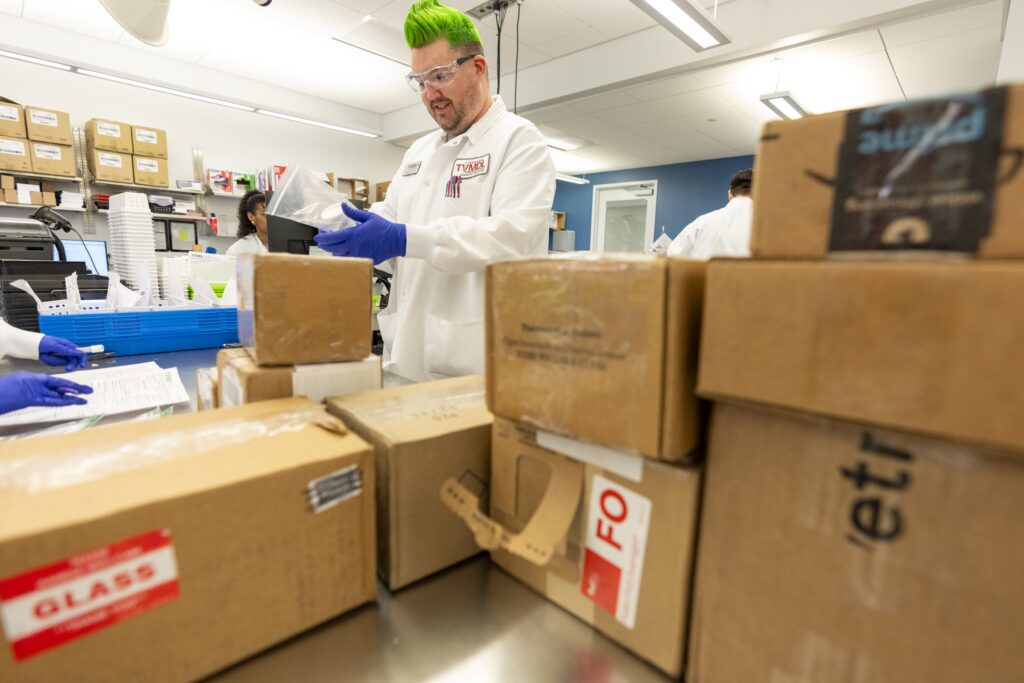 In a room full of stainless-steel tables, large mail bins, and innumerable shipping boxes, Client Services employees are found meticulously sorting through hundreds of specimen submissions daily. During this process, specimens are compared to submission paperwork for each case to ensure that adequate client information is received for results reporting. The protocol also confirms clarity in test requests and consistency between specimen inventory and client-provided lists.